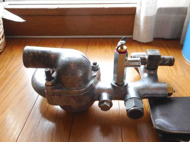 | 近くのHCを見に行ったところ、螺子切りダイスの割と安いものがあったので、購入しました。ヒーターコックの螺子の上半分くらいを、平行螺子に切り直します。 |