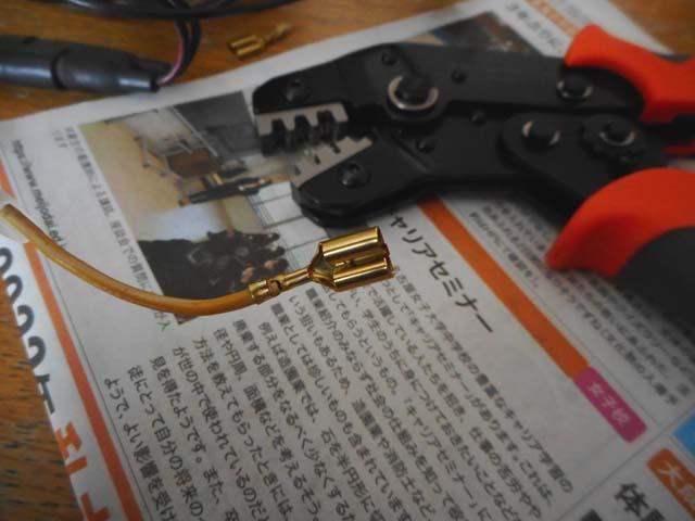 誌に、この抜き取り作業には「段ボール用のホッチキスの針を使うと良い」という記事があった記憶なので、やってみたのですが、やり方が拙いのか、ギボシを抜くことはできませんでした。 同じカプラーも、探せばあるのかもしれないのですが、諦めて、買ってきたキボシとスリーブをサクっと取り付けます。 |