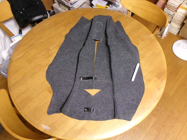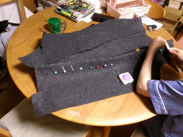| 奥さまにベルトをフエルト生地にちゃちゃっと縫いつけてもらって当面の作業終了かと思いきや、 |