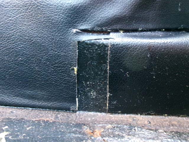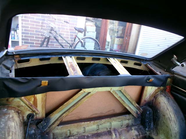 | リアガラスの下部分、ここは剥がしたビニールレザーから型を取って切り出したのですが、どうもあまり精度が出ていません。 |