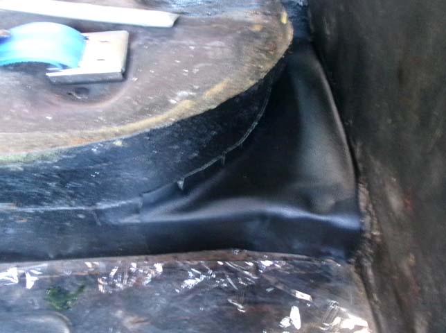 | 皺の部分を折り曲げてボンドで接着。下の部分は既にボディに合った形ができているので、簡単に貼ることができました。 |