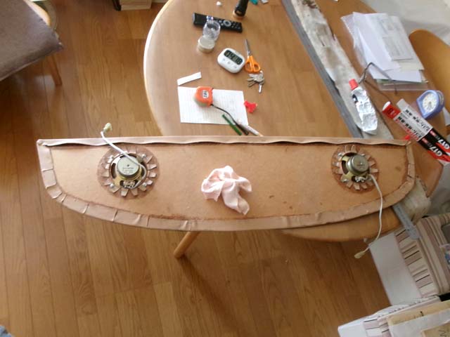 | レザーが新しくなったことでトレイ周りの見た目も引き締まりました。ビニールレザーはきちんとした作業台がないと、大きいパーツ切るのは思ったより難しいし、きちんと貼るのもなかなか難しいです。やってみて、元々の精度があまりでていない理由が判った。この作業は元々、現物合わせの切った貼ったでやった工程が多かったのかもしれません。 |