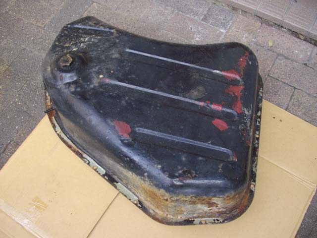 | 去年の8月に、Yahoo!オークションで燃料タンクを購入しました。 燃料タンクはちょっと不安のある部分ですので、いつでも使える予備を、ひとつ作っておきたかったのです。 |