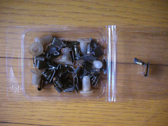| 内張の留め金具は、みん友の FFD4649 さまからの、貴重ないただき品です。当時は汎用品だったのか、パーツリストには載っていないようです。 |