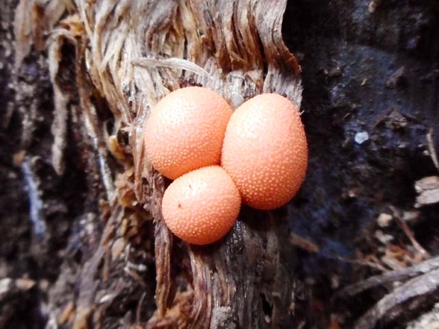 枯れ木に生じた時は、橙色で非常に柔らかい。