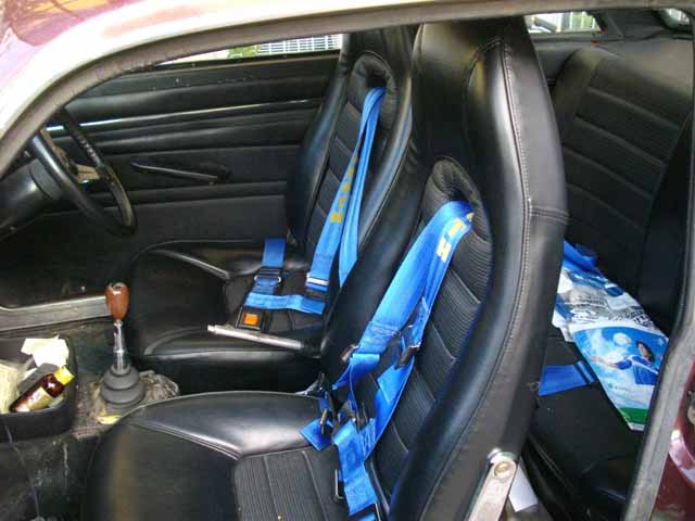 | ベレットのシートは、サポート性のいいシートで気に入っている(フォーミュラーシートというらしい)。この車のレストアにあたっては、スポーツ走行用のバケットシートに取り替えるのではなく、オリヂナルのシートを活かすことにした。 車を購入した時点で、既にクッションのスポンジは劣化して、粉と化しつつあった。また、黒と中央部の青との色の組合せが、何とも気持ち悪い。これに関してはデザイナーのセンスを疑う。 そこで、シートの張り替えを依頼するにあたっては、オリヂナルのイメージを損なわないように、色を黒と黒の組合せに変更し、四点式のシートベルトが通るように、背もたれに棒を一本溶接してもらい、その上にシートチベルト用の穴を開けてもらった。 |