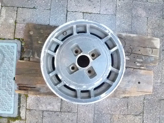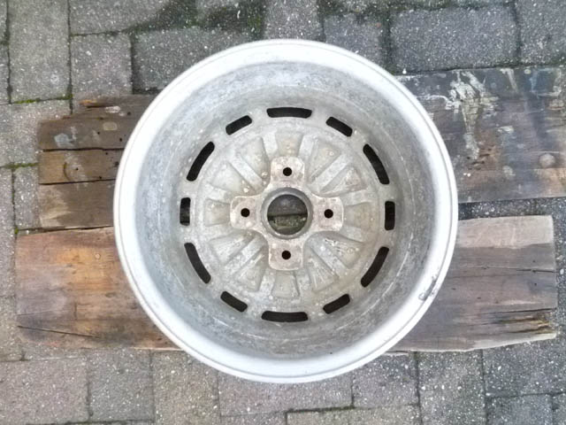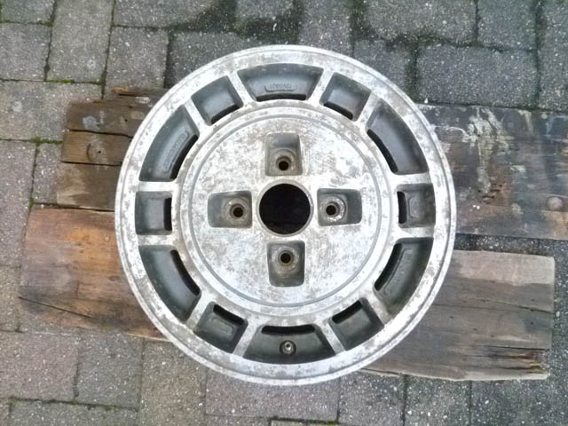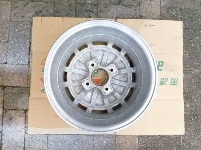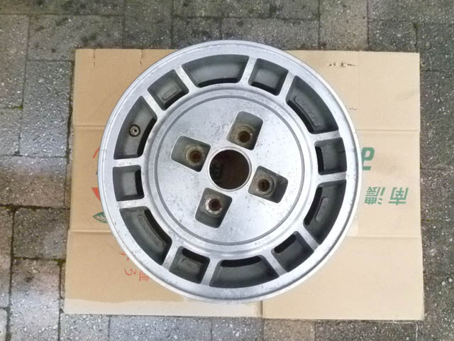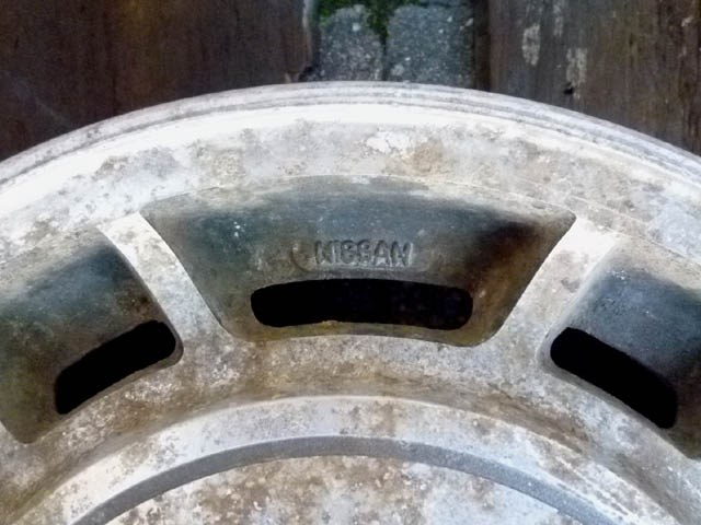 | 日産の910ブルーバードSSSの純正品に間違いないようです。FR用にしては、かなりオフセットが深いです。 純正のホイールは丈夫いから、この点ではベレット向きでしょう。 |