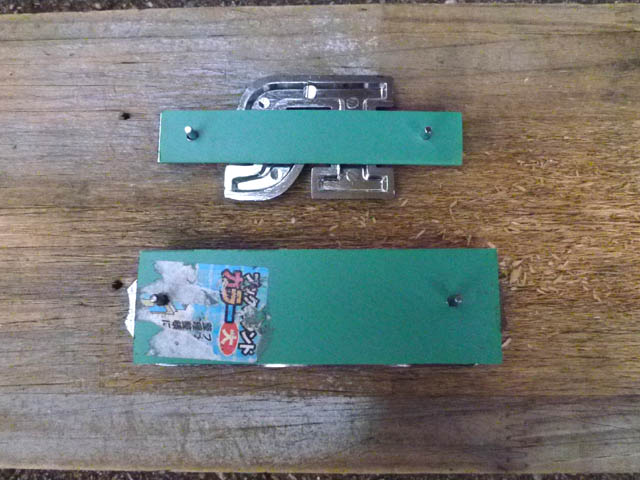 裏側は、汚れというか、塗料らしき黒いものが付着しているので、今のうちに磨いておきます。グリルのエンブレムはあまりよく見たことはないので、金属製で、取付部のポッチにネジが切ってあって、ナットで留める方式かと思っていたのですが、ボディのエンブレム同様プラスチック製で、ネジも切ってありませんでした。金属製ならメッキ以外の部分を、カムカバーを塗装した塗料の残りで、赤く結晶塗装しようと思っていたのですが、無理ですね。 ベレットが手元にないので、「GT」エンブレムがどうやって留めてあるのか確認できないのですが、グリルの裏からエンブレムの大きさに合わせた鉄板を一枚咬ませて、3mmのプッシュナットで固定というところでしょう。「typeR」のエンブレムも、「GT」エンブレムの代わりに、グリルに付けた方が良いか。 計測してみると、ポッチの太さは、「DOHC」のエンブレムは根本で3.2mm、「typeR」のエンブレム2.9mmのようです。 当て板は、百円ショップで1mm厚のブックエンドを買って、切って使う事にしました。 |