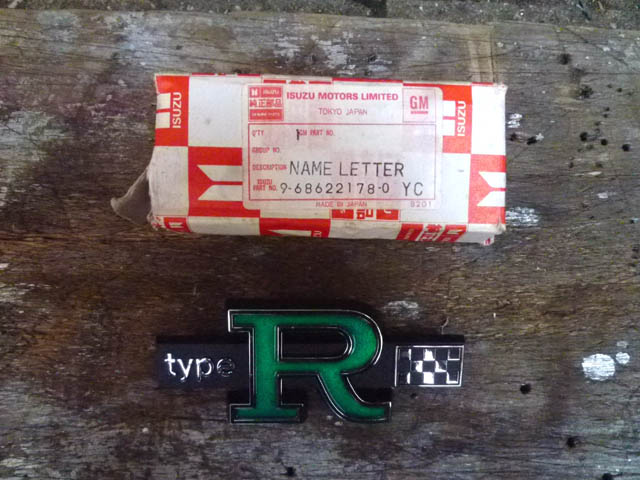 | フロントグリルの「DOHC」のエンブレムは、あったかどうか、よく覚えておりません。これ以上探したり、いすゞのパーツセンターに在庫を問い合わせたり、笠寺まで取りに行くのも面倒なので、手っ取り早くオークションで中古品を購入しました。 |