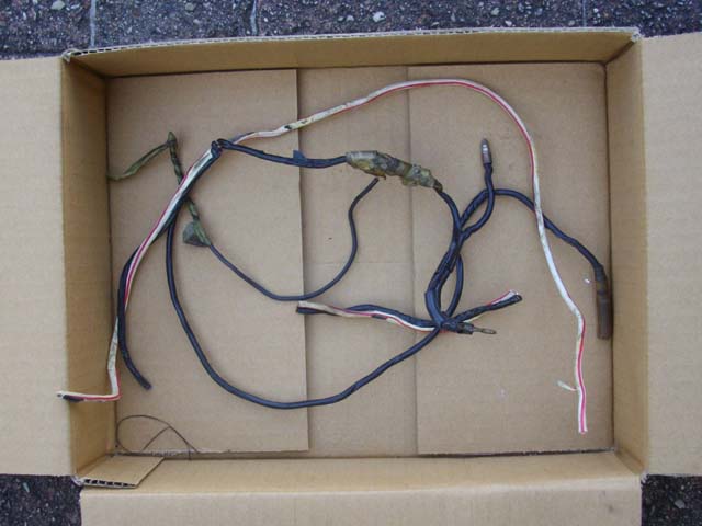 | セルモーターの調子を確認するために、ちょこちょことベレットを乗り回していたが、夜息子を乗せて走っていたら、何やら焦げ臭い臭いが。そして三連メーターの上の隙間から、白い煙が出てきた。やばい! これは絶対にやばい!! 先日引き直したセルモーターの配線だけではなくて、配線全体の劣化は、以前から気になっていたところだ。配線の被膜が破れてショートしたか、途中の抵抗が大きくなって電気が流れにくくなっているのだと思うが、焼けた場所を調べても、多分そこだけの修理では済まないと思う。 そこで、先日セルの配線の引き直しをお願いした都電機さんに、焼けた個所と、その回りのやばそうな部分の点検修理をお願いした。 |