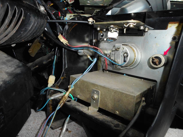 | この辺りがコンソール部分のはずですが、ソケットの+の螺子に繋げるような形の端子は、何故か見当たりません。配線図を見ると、カプラーはなしに、ソケットに直結しています。 |