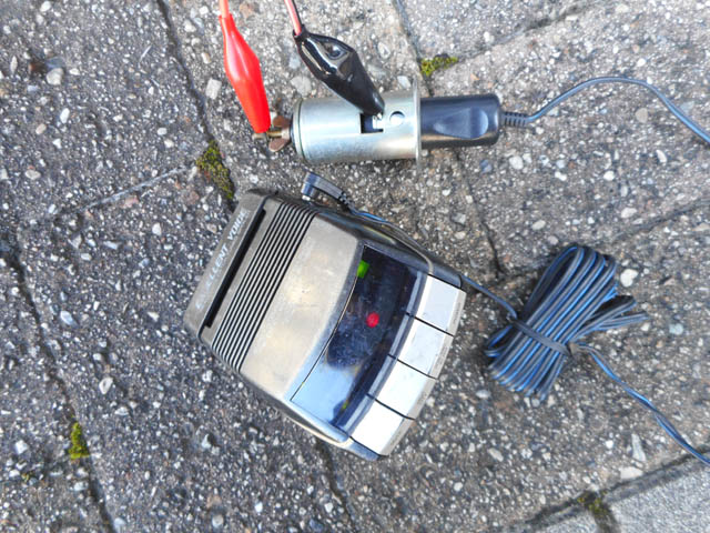 | 配線側にシガーソケットに繋がるような端子が見当たらないので、どのような端子が繋がるものか、まずシガーソケットを外して確認してみました。 シガーソケットが問題なく使えるかどうか確認するために、前に使っていたレーダー探知機を接続して、バッテリに直結してみました。+は蝶螺子のところしかありません。−はとりあえず、絶対に−の部分に繋いでみました。接点の部分が錆びていたのですが、特に問題はないようです。−は調べてみると、ケースの後の部分でとることができます。 将来の配線の引き直し用に、1800GT後期型のケーブルが買ってあったことを思い出し、探して拡げてみました。 |