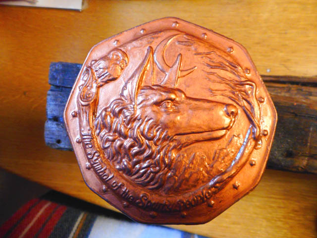 | 三回目の塗装の時に、ちょっと塗料が垂れてしまったのですが、削りにくそうなので、そのままいきます。 立体感を強調する為に、3時間おいて黒さび発色液を塗布します。黒さびが全体に出てきた段階で、よく絞った布で、(いすゞスポーツさんのブログのバッヂの写真を参考にしながら)凸部のさびを拭き取ります。更に1時間くらいおいて、乾いた布で、全体を磨きました。 |
