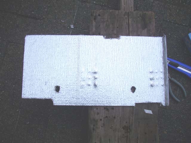 | 都電機さんでヘッドライトの配線をやり直してもらったので、次はキャブのバーコレーション対策を強化することにした。 ヒートプレートを付けてから、SOLEXもそれ程熱を持たなくなったが、それでもエンジンが暖まった状態では一発で始動しない。ヒートプレートを直接SOLEXに固定したので、遮熱板であると同時に導熱板になってしまっている可能性がある。また、エキマニがヒートプレートの上まで出っ張っている(一応耐熱帯は巻いてあるが)ので、こちらからも輻射熱がきている。 とりあえず、熱くなったヒートプレートからキャブに熱が伝わるのを防ぐ為に、ヤフーオークションで買った遮熱シート=サーモガードクロスをヒートプレートの下部に貼り、遮熱シートで輻射熱の大部分を反射するようにしてみた。 |