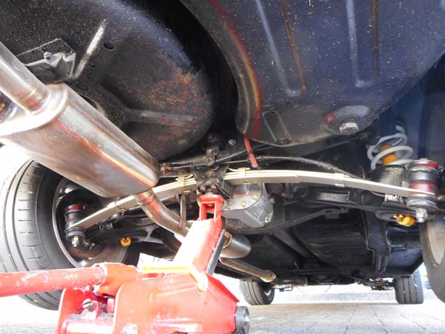 | リアのスプリングは、ノーマルのものを使用しますが、フロントの特注スプリングに合わせて、白く塗装しました。前後のスプリングの性能を活かすためのショックはエナペタルのビルシュタインのスタンダートを選択しました。 リアのベレット独特の、コーナリング中にキャンバーが変化する足回りは、非常にやっかいというか、まずいです。独立懸架に拘って四輪ダブルウィッシュボーンにでもするのでなければ、普通にリジットでも良かったと思います。前のベレットの時に、アウトが下がった時にインを持ち上げるヤジロベー式に(ひっくり返る方向に)力が働くリーフスプリングをなんとか制御しようと、リーフのセンターの支点部分を固定して、スタビライザーの役割を果たさせようとしたのですが、あまりうまくいきませんでした。 性能アップだけなら、リーフスプリングを外して、代わりにスタビを入れるのが正解かと思いますが、この足回り形式もベレットの貴重な個性なので、FFD4649さん式に3枚のリーフの順序を代えて、少しでもキャンバー変化を抑えることにしました。 今回デフに、4ピニのLSDも組み込んでもらっています。 タイヤは、14インチ×5.5J、オフセット+35mmのホイールに、ブリヂストンPOTENZA RE11A 185/60R14 82H を組み合わせました。フロントは(机上の計算とは違って)微妙にフェンダーから張り出していますが、法改正でOKになりました。リアはトレッドを少しでも拡げる為に、ノーマルよりもやや厚いドラムプレートを入れています。 より正確なハンドリングを得る為に、前後のアーム共、ショア90のウレタンブッシュ化しました。 考えられる限りのことをやってみたのですが、オリヂナルを尊重する立場から、特別変わったことはやっていません。市街地走行では、路面の荒れた道路では、ブッシュが固いだけに路面の凸凹がダイレクトに伝わってきますが、普通の舗装路では、以前よりも良い感触です。公道では、危険すぎて限界付近の挙動の確認はなかなかできないのですが、ドライヴしながら、足回りをテストしていきます。 移動式オービスが、怖いなぁ。 |