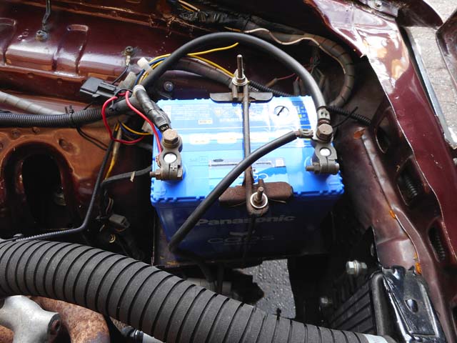 | 再度店の車のバッテリーと接続して始動したら、今回は一発で簡単にかかりました。オイルが下がっていないかバッテリーが強力なら、現況一発で始動できるようですが、この気温でエンヂンの始動に失敗したとなると、点火時期を遅らせた程度では、この冬がのりきれません。 前のベレットは、2017ccまで排気量UPしていたので、バッテリーはトランクに40B×2を載せていたのですが、オリヂナルらしさを演出している現在のベレットでは、バッテリーの場所を変えたくないんだよね。 バッテリーは短側辺と高さはB規格しか無理そうですが、長側辺は22cmまではいけそうです(ギリギリ24cmまで、いけそうな気はするのですが……)。この条件で容量の大きい(できたら80B22くらいの)ものを検索したら、結局サイズは変わらないパナソニック カオス60B19R/C7という製品が引っかかってきました。 |
