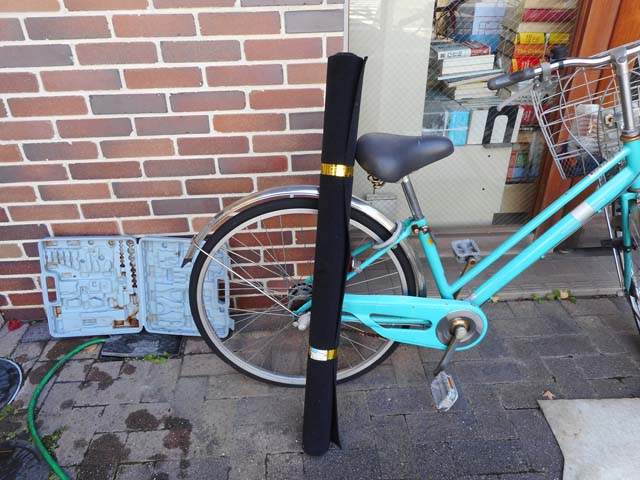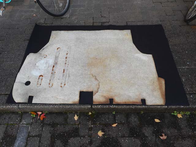 | 出来上がりです。薄い分安っぽいですが、使い勝手はよくなりました。素材は異なりますが、オリヂナルと同じ黒色です。古いカーペットは、型としてとっておきます。 |
