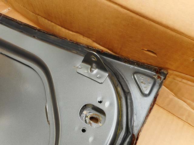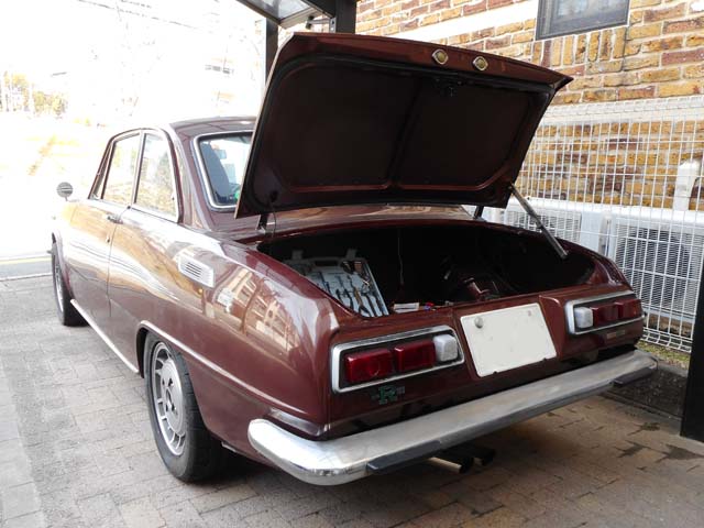 | トランクフードは、確かシティーオート製のFRPのものを取り付けていた(と思う?)のですが、去年自動車屋さんに預けている時のトラブルで、現在はリスタードのものに付け替えられています(^^;;。リスタードのものは、軽量化重視なのか、シティーオートのものに比べると、薄く柔い感じです。 このリスタードのものは、ストッパーを固定する為のステーが埋め込まれていないようです。しかし、ストッパーがないと不便なので、フードにストッパー用のステーを追加することにいたします。 まずは、前のベレットに付けていたとおぼしき純正品のトランクフードで、ストッパーの取り付けステーの取り付け位置やサイズを測定します。 |