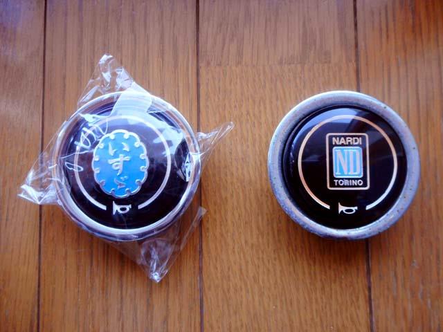 | ヤフオクで買ったいすゞのさざ波マークのホーンボタンですが、運転席に座る度に感じるロゴ部分の安っぽ加減が、半端ではありません。 均等に押し込んだはずですが、ホーンを押すと、固定の針金がホーンボタンリングの裏側に抜けて、斜めになってしまいます。ホーン自体は、一度針金に曲がり癖をつければ難なく入るのですが、もう少しホーンの取り付け部分の奥行きがあるリングが必要なようです。 たかがホーン、されどホーン。はっきり言って気に入りません。元に戻すのも何なので、同じようなさざ波マークの、もうちょっと値が張るホーン(ヤフオクホーンの3.75倍相当)を購入することにしました。SPEED SHOP FUさんの製品です。 |