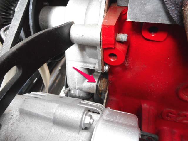 | 最終的に戻りのホースはウォーターポンプに繋がると思うのですが、それらしいのはこの部分しかありません。 この部分に嵌るパーツのサイズは、クーラントを抜いた時にしか、殺してある螺子を抜いて確認できないのですが、多分ウォーターポンプも倉庫のどこかにあると思うので、そちらでサイズ・形状など、確認できればです。 |