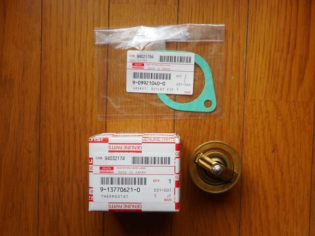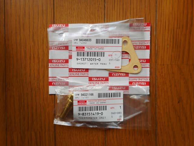 | 「おんやぁ?」、片側だけ差さっていたホースを外すと、左右で管の径が違いますね。エンヂンルーム側の外径は17mm、室内側が15mmのようです。流水効率からして、ウォーターアウトレットからヒーター、ヒーターからウォーターアウトレットを経由してウォーターポンブへと、全て同じ径のホースを使用しているのかと思っていたのですが、二種類の径のホースを異径ジョイントで繋いで、場所によって使い分けているようです。そういえば、ホースの差し込み口も17mmのところと15mmのところがあるので、何となく引っかかっていたのですが(^^;;。 笠寺のいすゞのパーツセンターに寄って、頼んであったウォーターアウトレット関係のパーツを取ってきました。 |