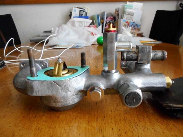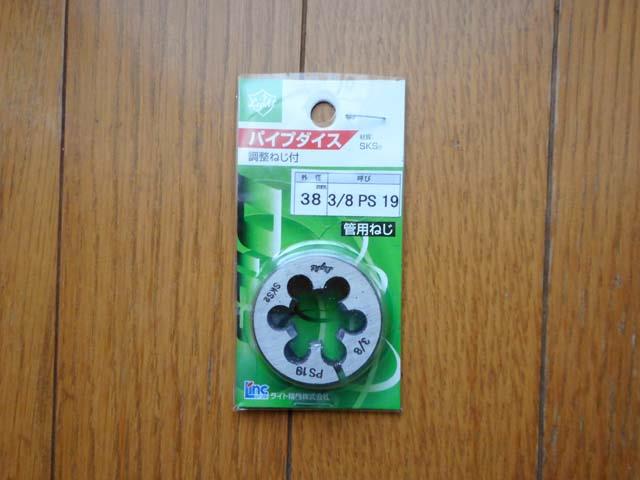 | 近くのHCを見に行ったところ、螺子切りダイスの割と安いものがあったので、購入しました。ヒーターコックの螺子の上半分くらいを、平行螺子に切り直します。 |