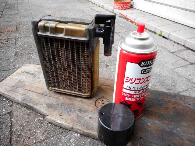 | ヒーターコックは動きが硬いので、シリコンスプレーを吹いてみた。動きはある程度軽くなったが、キイキイと音がする。 一晩寝かせてみたら、無茶軽く動くようになりました。これが正常な状態のようです。 |