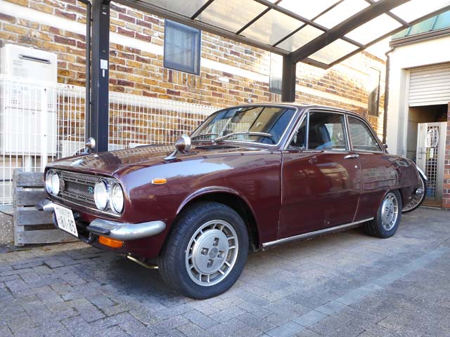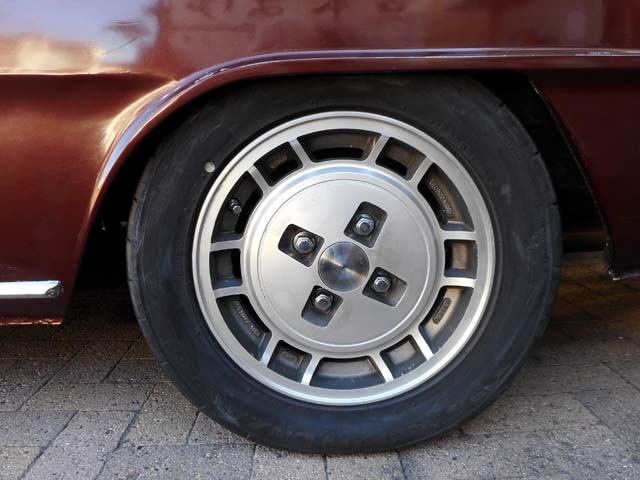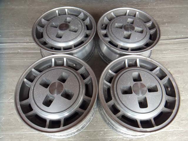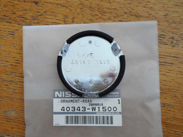 | 現在ベレットには、ヤフオクで購入した910ブルーバードの純正アルミホイールを、(インチキ修理して)履かせております。FR用にしてはオフセットの値が大きいので、車幅が狭く、太いホイールの履けないベレットとの相性は良いのですが、購入時センターキャップは付いておりませんでした。 |