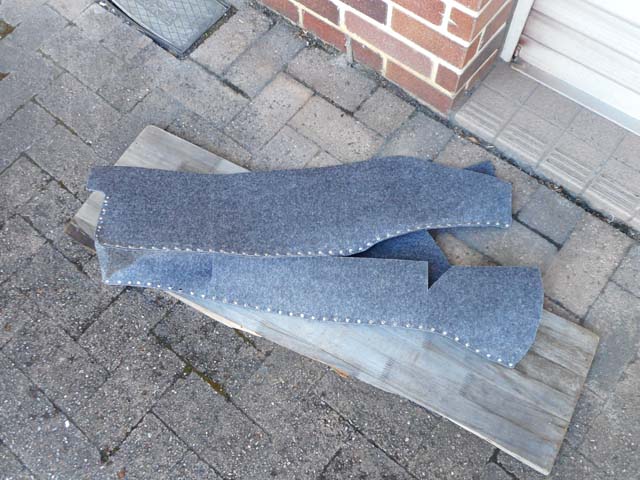 | 以前キンブルで只同然で売っていたトランクカーペットを買って使っており、薄くて捲り易く、大変使い勝手も良いのですが、その素材を使えば、以前室内用のカーペットを作った時に、かなり妥協して作ったセンタートンネル前部(ミッションの収まっているところ)の立体的な形状のカーペットを、かなりオリヂナルに近い形で復元できるのではないかと、ずっと考えておりました。 ただそれっきり売っているのを見かけないし、説明書きも捨ててしまって、素材やメーカーも判りません。オリヂナルのように編んだものではなく、フリーカットできる柔らかいカーペット調の素材というと、ニードルパンチカーペットの一番薄い2mm位のものではないかと考えて、一か八かネットで注文してみました。 |