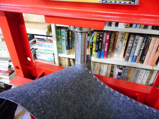 | カシメの頭をプレスで、軽く圧していきます。 |