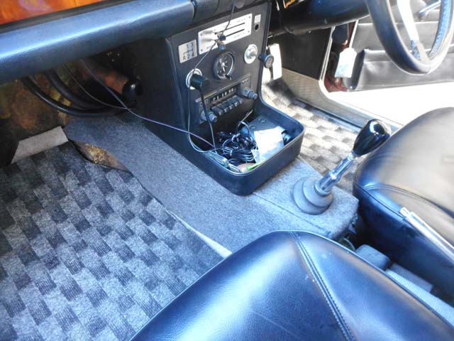 | これでほぼ完成(^_^)。 早速今まで使っていたものを外して、取り付けてみようとしたのですが、ヒーターからクーラント液が漏れていることが判明。場所を特定するのが面倒なので(まあホースの差し込み口だとは思いますが)、ヒーターコックを閉めて、カーペットの取り替えを優先します。 邪魔になるフットレストは一旦外すつもりだったのですが、螺子が固着して簡単に外れそうにない。まずいことにここの螺子は、フットレストの素材に合わせて柔らかいアルミ螺子を使った記憶ですので、あまり強く回せません。そこで手っ取り早く、カーペットのフットレストに干渉する部分を切り取り、やっと取り付けができました。 |
