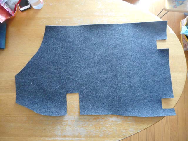 | 今まで使っていたカーペットの形を一部修正して、パンチカーペットを切り抜きます。 |
