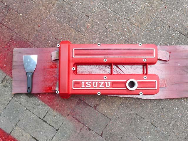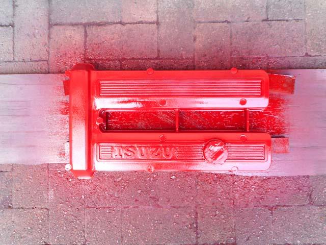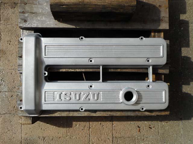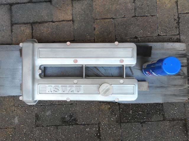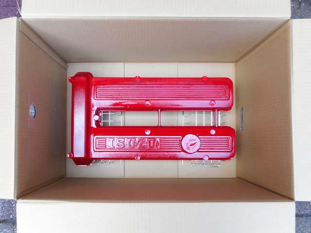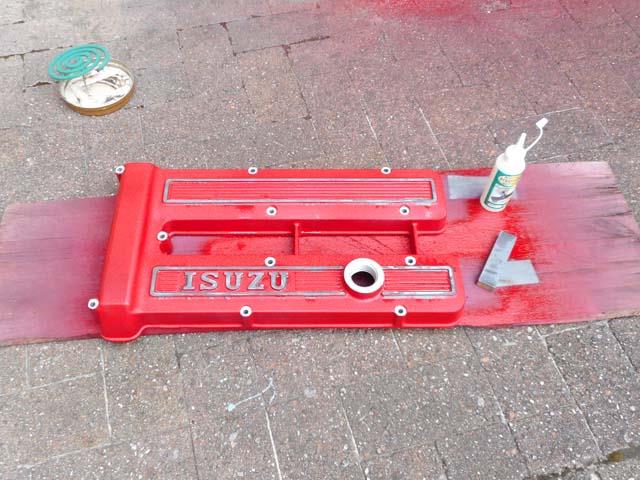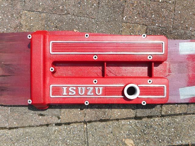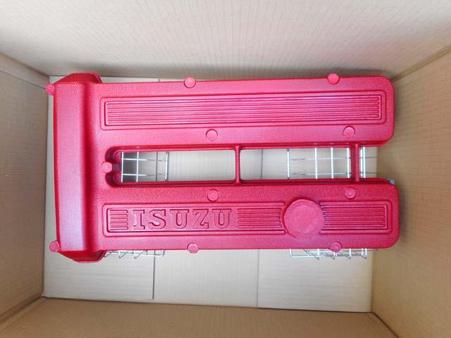 | ベレットのG型エンヂンのヘッドカヴァーですが、ベレットが生産された時代である昭和49年以前の「ISUZU」のロゴの入ったものを付けたくなりましたので、G161Wのものを1枚塗装することといたします。 |