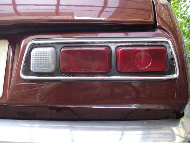 | ベレットのテールランプの枠ですが、本来はメッキだったはずですが、黒く塗りつぶされています。パテを盛って修理したような跡があるので、そのあたりの修理を誤魔化すために、黒く塗りつぶしてしまったのかもしれません。そうすると枠部分の塗装を剥がしても、それだけで元のかたちに戻すことはできないことになります。真面目に修理しようと思うと、かなり大変そうです(追突された場合などに備えて、新しい部品はストックしてあります)。 |
