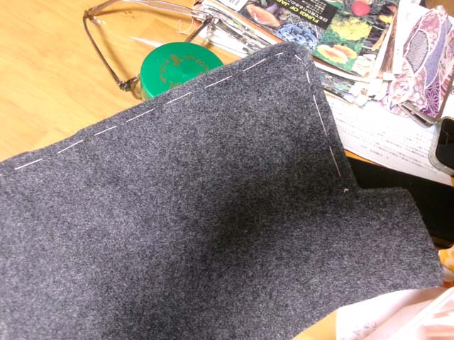 | この縫いつけ作業が家庭用ミシンではどうしてもうまく行かず大苦戦。結局手縫いになりました。 |