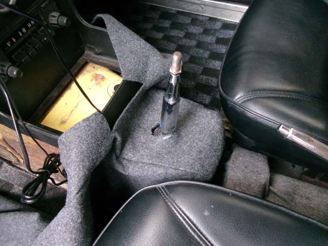 | ベレットのの不在の間に作っていたセンタートンネルカーペットを完成させ、取り付けます。 |