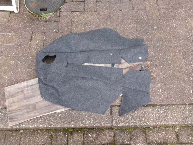 | センタートンネルカーペットの後方部分は、最初に作ったものを型にしてフエルト生地を切ります。オリヂナルの後方部分のカーペットは、床まで合わせての一枚物なのですが、当時はそれが判らず、センタートンネルと左右の床の三分割で製作しました。フエルト生地は、カッターでも切りにくいし、ポンチではいくら叩いても、完全に穴が貫通してくれないようです。 |
