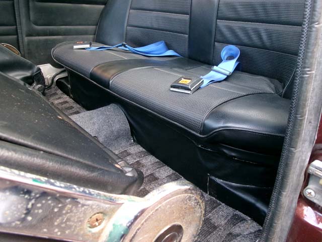 | 後席を元通り嵌め込んで、一ヶ月に及ぶ作業の完成です。 思い通りにいかなかった後席下の上の部分のレザーの貼り方ですが、まず上部の曲がり部分に奥さまの助言通り切れ目を入れておく。上部の直線部分を貼り、全体の位置決めをした後、その下の部分を先に貼っていく。ボディの曲面に合わせて下の側面部分を貼っていく。最後に側面の上の部分を貼っていくという手順でうまく貼れるのではないかと思われます。 何十年か後、再びこの作業をする必要が生ずれば上記の手順でやってみますが、その頃には、私はもういないでしょうね(^^;;。 |