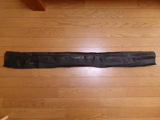 | この大きいビニールレザーはよく判らないのですが、シートベルトの通りそうな個所に切れ目が入っているので、後席の裏あたりでしょうか? リアガラスの下部分以外のレザーは再使用できそうですが、それなりに固くなっておりますので、この際全て新しく作り直しておきたいと思います。 レザーの表面を清掃し、裏からアイロンをかけ、上から重しをして折れや縒れをなるべく伸ばし、 |