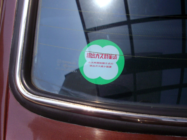| 赤い染料は紫外線に弱い上に、車も屋外保管なので、色褪せてじきに旧車っぽいステッカーになりそうです(^^;;。 ステッカーの注文は二枚以上ということでしたので、もう一枚48年規制対応済みのステッカーを買いました。 |
