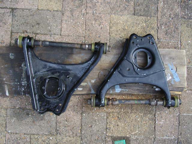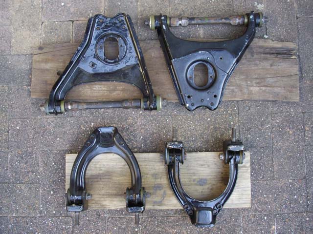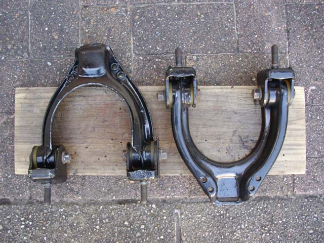 | 無事、挿入成功です。私が途中まで挿入した側と三協自動車さんに完全にお願いした側の差は、シャフトを万力に固定してアームを動かしてみると歴然で、私がシリコングリースを 塗った側はかなり鳴きが出ます。シリコンスプレーを追加で吹いてもらって、大分静かになったのですが、やはり完全には収まりきらないようです。 追伸: 友人のところで、アッパーの金具やロアのシャフトを万力に挟んで固定し、ボルトやナットを締 め増ししてもらって、長かった作業も完成です。ロアのブッシュの長さも予定通り、バッチシです。 |