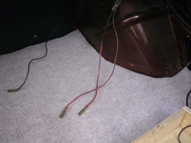 | ラジオとの接続は、トランクにきている赤い配線が本当にスピーカー用で、ちゃんと生きてさえいれば、接続用の短いケーブルを作るだけなので簡単なのですが……。はてさて? |