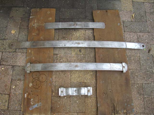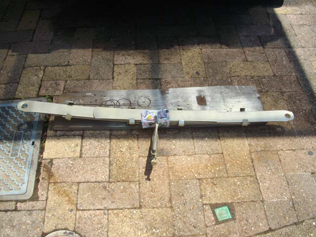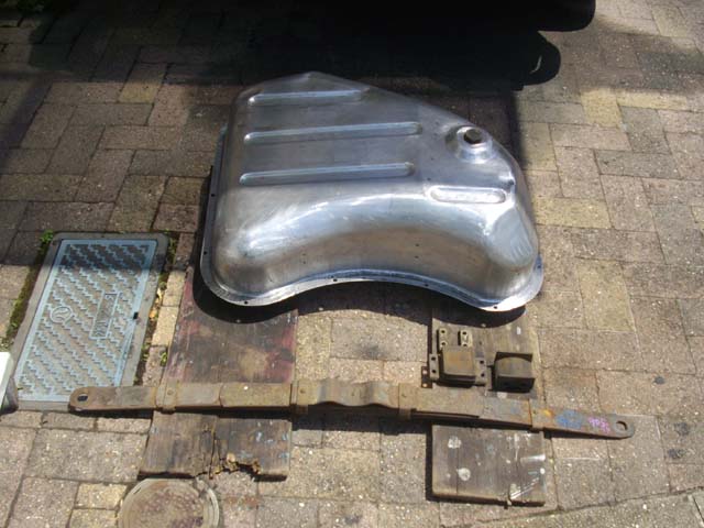 | Yahoo!オークションで、リーフ・スプリングを購入しました。 フロントの足回りを今年中に90%くらいは完成させるつもりですので、来年から取り組む予定のリアの足回りの為の準備です(後ろは、レストア中の燃料タンク)。 |