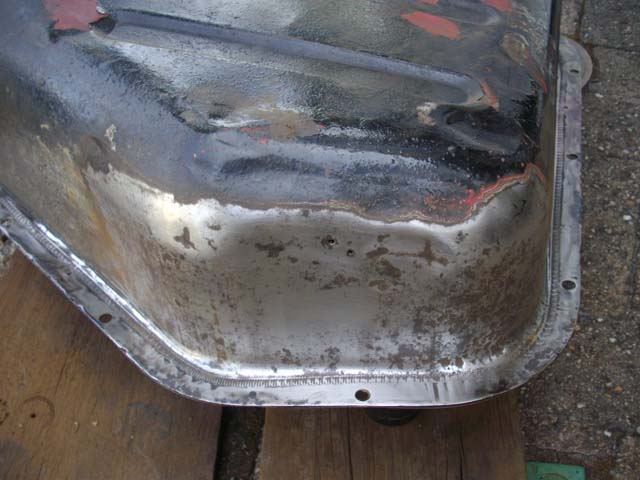 | 下部側面の錆をサンドペーパーで擦ってみると、何や ら縦に深く進行しているような嫌な感じの錆が二カ所。表面を磨いて、錆の部分をこじってみると、やはり貫通していました。 なかなか一筋縄では、行きそうにありません。 ここまでが、去年のお話です。 |