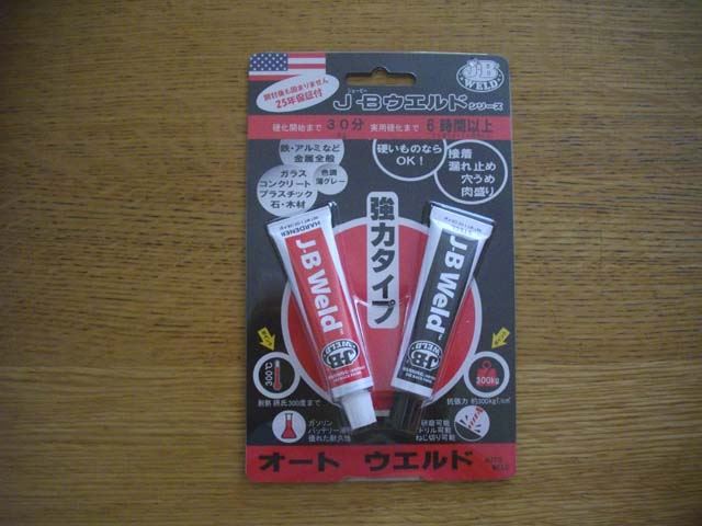 | みん友の FFD4649 さんにご紹介いただいたJ-Bウエルドを買ってきました。これを使用して、ハンダで修理しきれなかった部分を補修します。 |