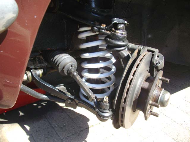前に乗っていたベレットから移植したA175Aランタボのベンチレーテッドディスク、『ZERO』ブランドのホワイトスプリング、かなり格好良いです(自己満足)。 |