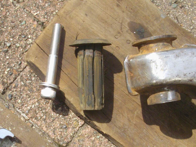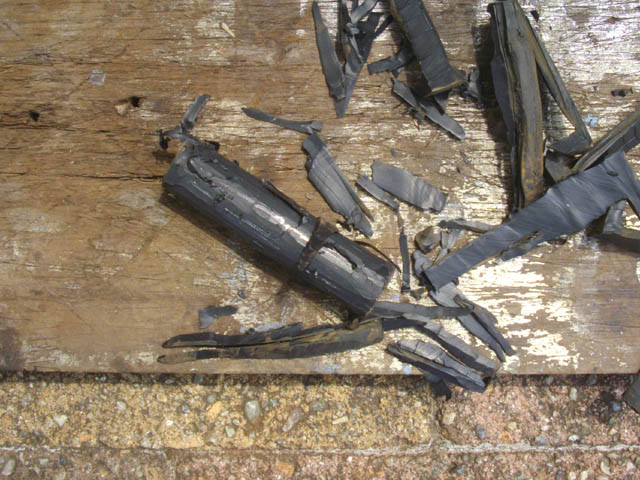 | カッターで、ブッシュのゴムを削ぎ落とします。 |