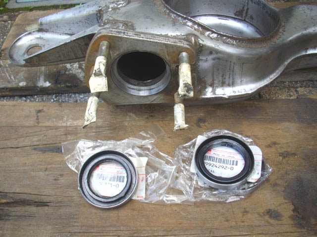 | 新しいオイルシールは、みん友の FFD4649 さまからの頂き物です。 ほぼ三ヶ月かかりましたが、リアアームの外側の錆取りはほぼ完了です。取りきれなかった錆は、POR-15で封じ込めます。 |