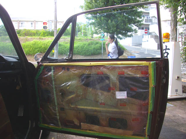 | テープを貼り直して、内張を取り付けます。んっ、謎の美少女が? |