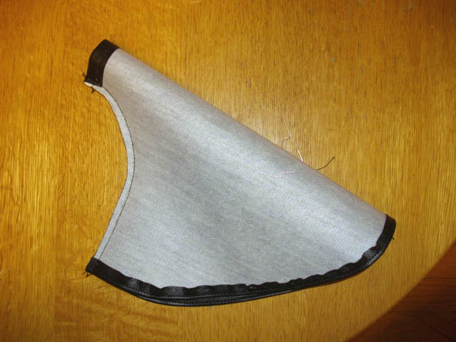 な厚いレザーを買ってきたことにあります。ペラペラの純正品やホームセンターで買った一枚目と違って、今回も縫製には苦労しそうです。 奥さまによれば、一枚目のR部分の縫製は完璧だそうです。 |